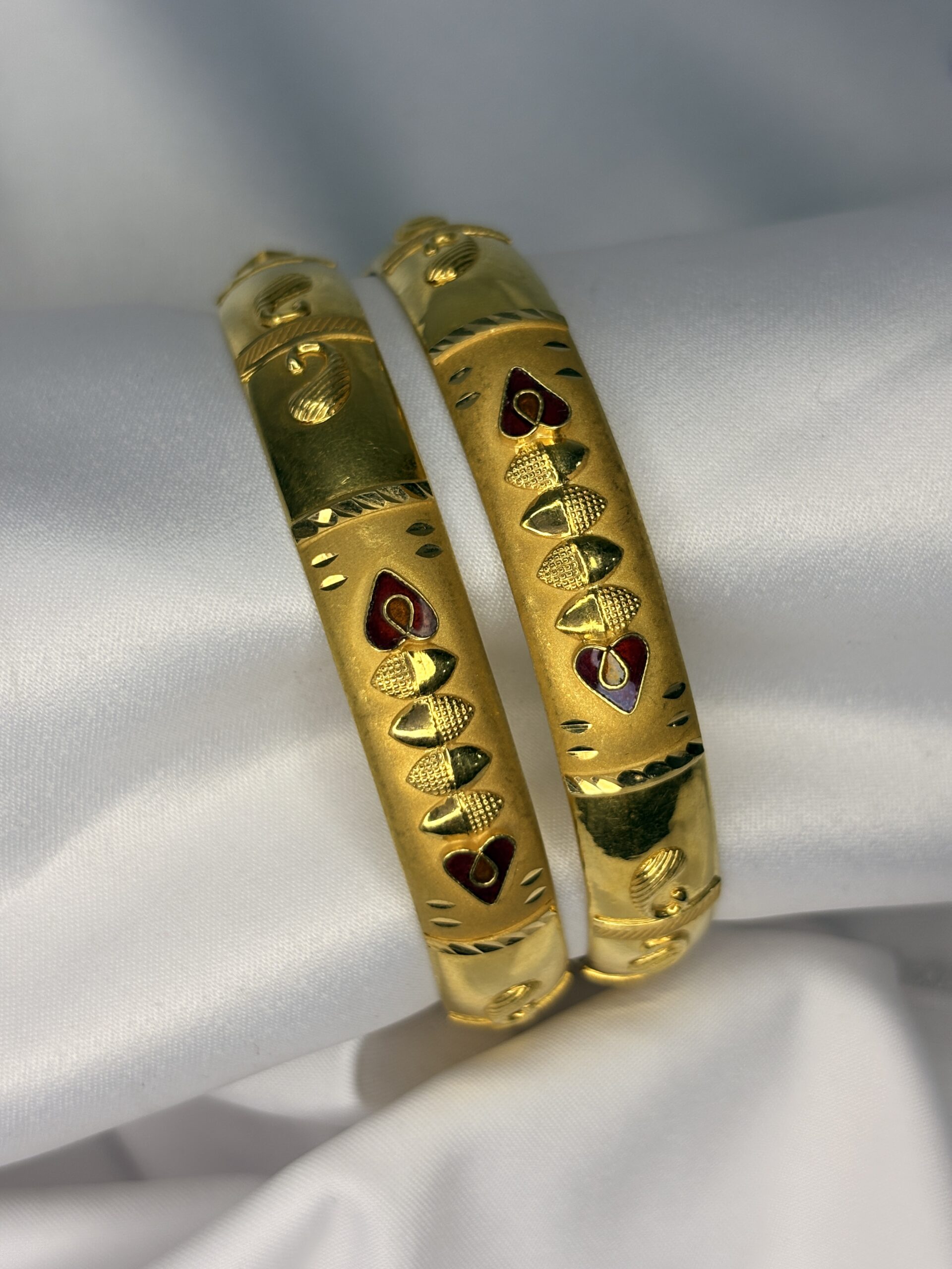 / Meenakari Heart Motif Gold Bangles