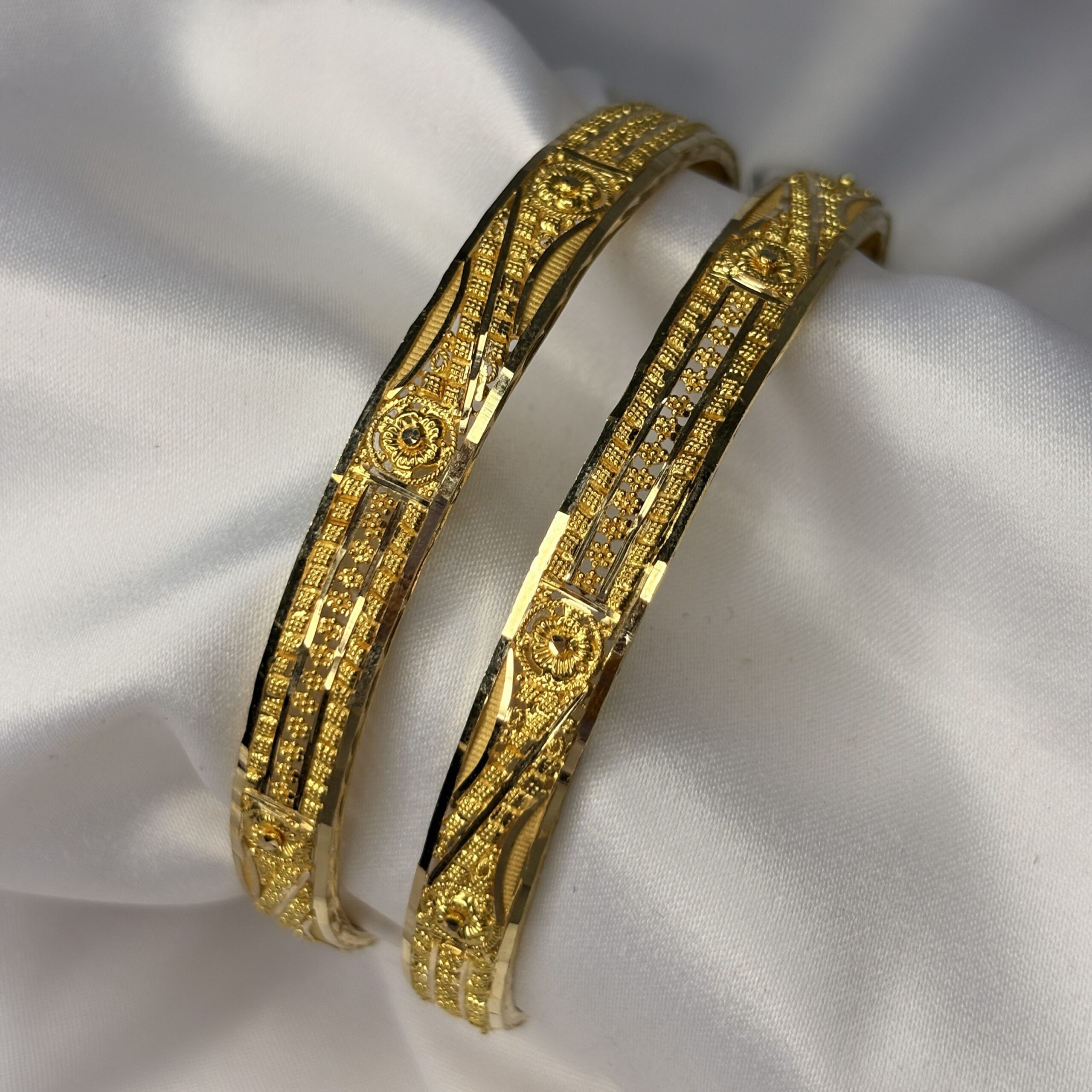 Floral Cut Gold Bangles